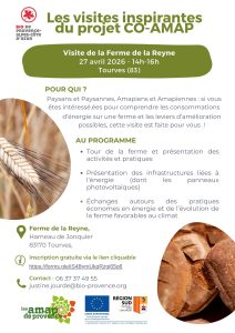 Bio de PACA et le les AMAP de provence vous invitent à participer à une visite de la ferme de la Reyne, située à Tourves (83). Cette rencontre est organisée dans le cadre d’un partenariat autour du projet CO-AMAP. Une ferme inspirante L’objectif de cette…