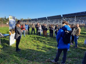 L’IRA2E a présenté les travaux menés sur l’agrivoltaïsme, en partenariat avec le campus et la Chambre d’agriculture du Vaucluse. Les participant·e·s ont pu découvrir le fonctionnement de la parcelle expérimentale et les premiers résultats des suivis agronomiques et naturalistes.