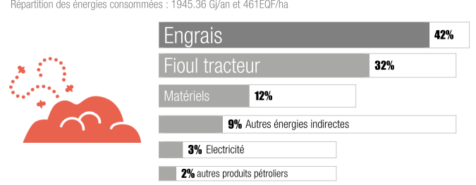 Autres énergies indirectes: Les autres énergies indirectes à savoir les produits phytosanitaires et les semences représentent 9% de la consommation énergétique et 38% du coût des intrants.